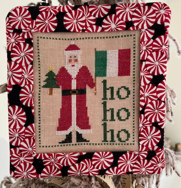 DMC threads used are Blanc, 310, 326, 353, 356, 726, 781, 910, and 986